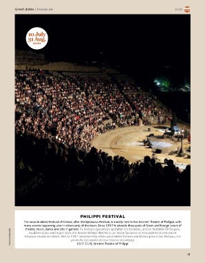 The second oldest Festival of Greece, after the Epidaurus Festival, is mostly held in the Ancient Theatre of Philippi, with
